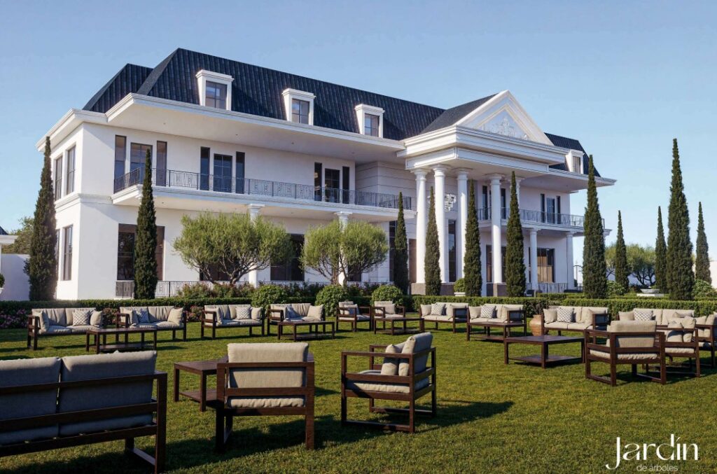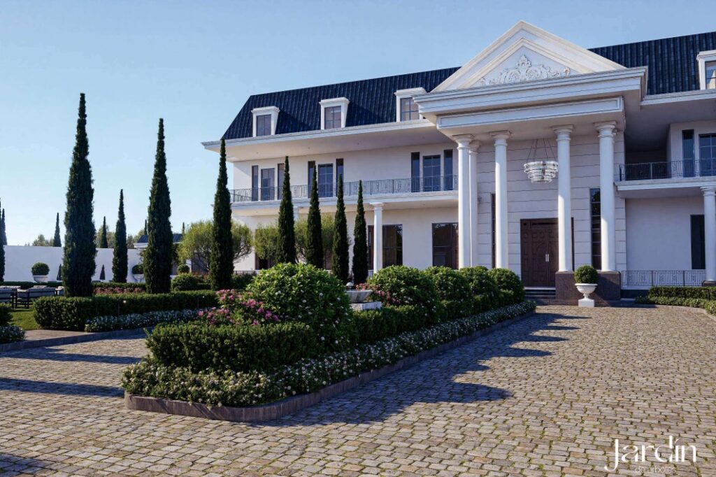 تم تصميم القصر ليكون علامة فارقة في المنطقة، حيث تتألف من 2 طوابق (أرضي، وأول) مصممة وفق الطراز “نيوكلاسيك” الذي يدمج بين فخامة القصور وحداثة التصميم الوظيفي